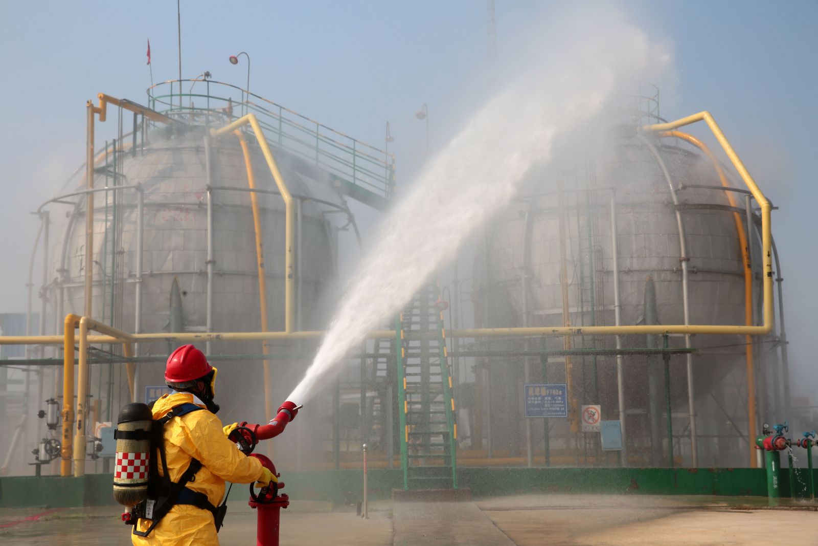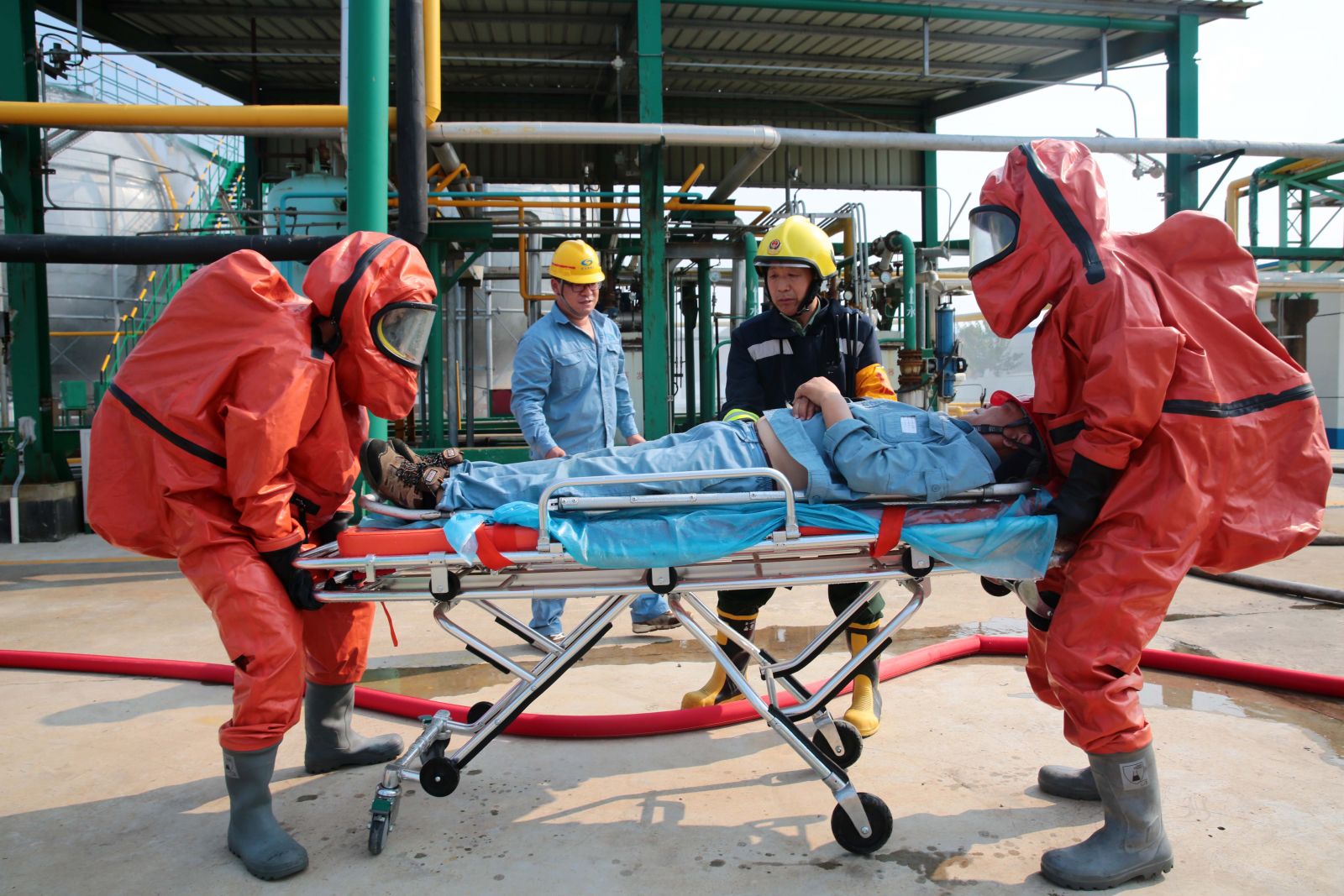 為檢驗(yàn)公司應(yīng)急救援時(shí)各環(huán)節(jié)的協(xié)調(diào)能力和應(yīng)急救援預(yù)案的可操作性,提高應(yīng)急人員在緊急情況下妥善處置突發(fā)事件的實(shí)戰(zhàn)能力,9月5日,公司以“液氨庫B球罐底部發(fā)生泄漏,現(xiàn)場當(dāng)班工人中毒”為假想事故,在液氨庫舉行秋季危險(xiǎn)化學(xué)品生產(chǎn)安全事故應(yīng)急救援演練。