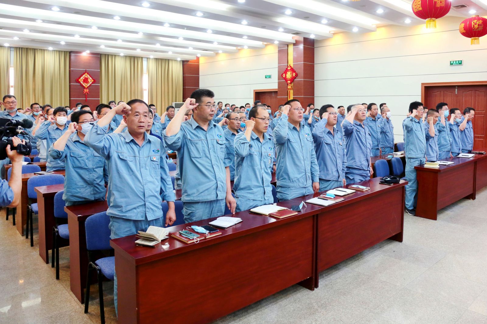 “我志愿加入中國共產黨,擁護黨的綱領,遵守黨的章程,履行黨員義務,執(zhí)行黨的決定,嚴守黨的紀律,保守黨的秘密,對黨忠誠,積極工作,為共產主義奮斗終身,隨時準備為黨和人民犧牲一切,永不叛黨。”會議開始,公司黨委副書記鈕維社首先帶領全體參會人員進行了莊嚴宣誓。