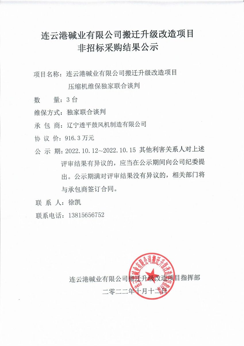壓縮機維保獨家聯(lián)合談判結(jié)果公示