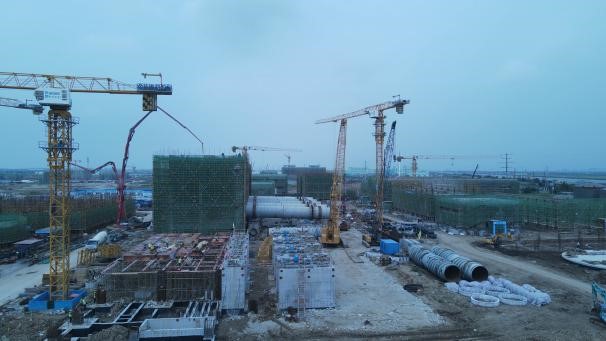 ⑸合成氨二標(biāo)段271原料煤儲(chǔ)運(yùn)破碎樓三層澆筑;#1轉(zhuǎn)運(yùn)站五層腳手架搭設(shè),鋼筋綁扎;#2轉(zhuǎn)運(yùn)站三層腳手架、模板拆除,四層腳手架搭設(shè),鋼筋綁扎,支模;汽車卸煤區(qū),煤筒倉外側(cè)土方土方挖取,圍檁安裝;820合成氨循環(huán)水站清凈廢水池鋼板樁拔除;塔下水池1支撐架搭設(shè),鋼筋綁扎;塔下水池2支撐架搭設(shè),對(duì)拉螺栓割除;吸水池1基坑開挖準(zhǔn)備;711煤漿制備二層腳手架搭設(shè),梁板柱支模,鋼筋綁扎,埋件安裝;762壓縮機(jī)廠房基礎(chǔ)短柱防腐;剩余設(shè)備基礎(chǔ)鋼筋綁扎,模板支設(shè);763空分后備系統(tǒng)上部結(jié)構(gòu)鋼筋綁扎,預(yù)埋件安裝,支模;764儀表空壓站基礎(chǔ)墻防腐;831空分變電所首層結(jié)構(gòu)鋼筋綁扎,埋件安裝,支模;761冷箱基礎(chǔ)冷箱設(shè)備帶板拼接施工;膨脹機(jī)房上部結(jié)構(gòu)鋼筋綁扎預(yù)埋螺栓安裝;712氣化框架立柱腳手架搭設(shè),鋼筋綁扎;灌注樁施工;樁基大小應(yīng)變檢測(cè);基坑開挖準(zhǔn)備;塔吊附近承臺(tái)基坑回填;842空分機(jī)柜間板墻鋼筋綁扎;713渣水處理集渣池支撐架搭設(shè),鋼筋綁扎,支模;設(shè)備基礎(chǔ)錨固鋼筋焊接。