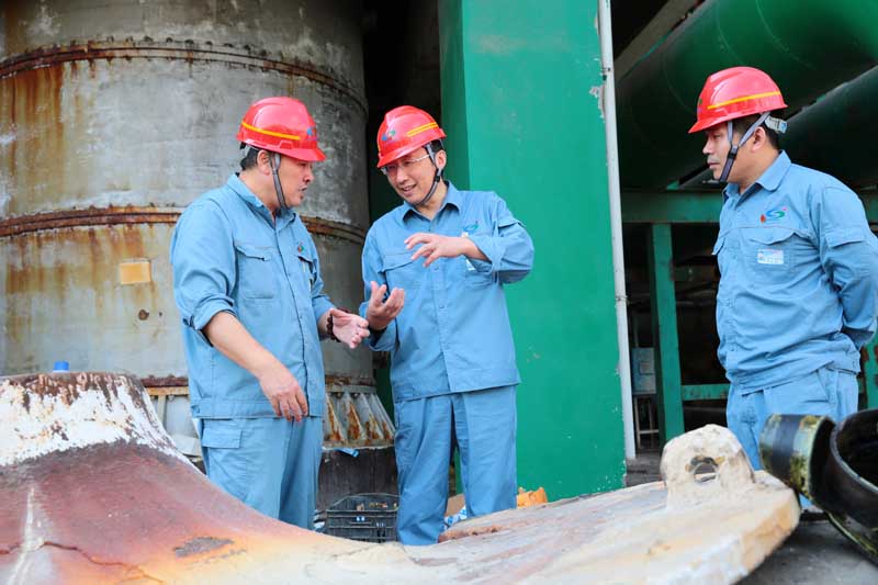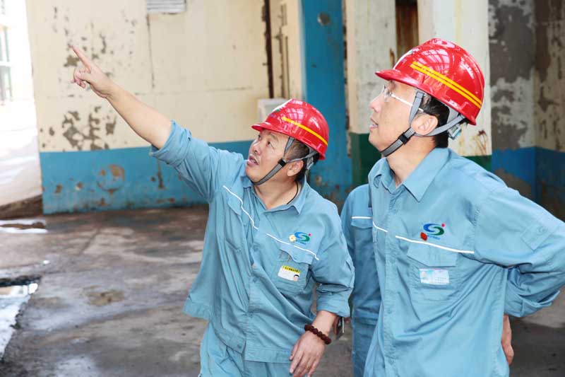 在重堿車間現(xiàn)場,張衛(wèi)民囑咐車間負責人,在高溫時節(jié)不僅要抓好生產運行,更要注意酷暑天氣下安全管理和員工的身體健康。