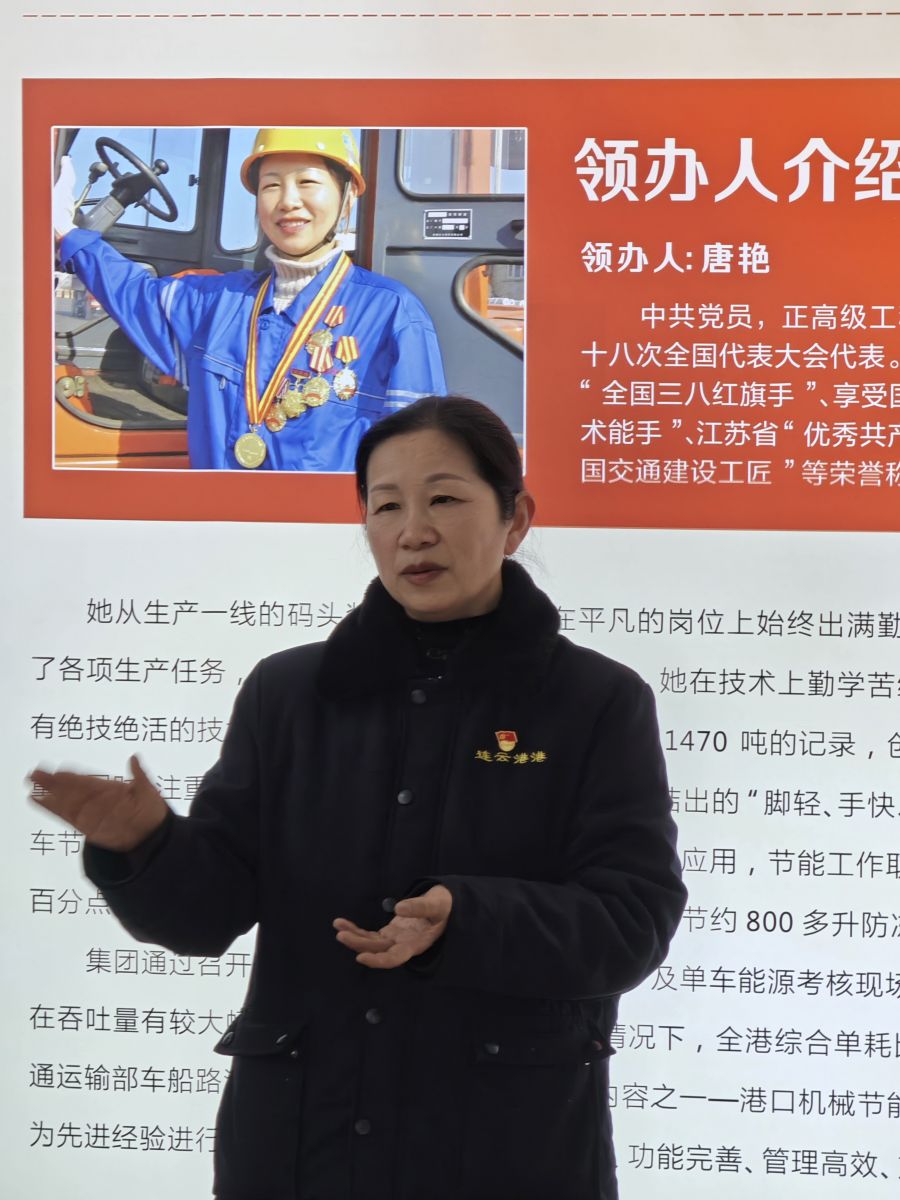活動第一站,大家乘車前往連云港港口集團有限公司,參觀全國勞模唐艷工作室?,F(xiàn)場,勞模唐艷為青年職工們介紹了工作室的情況,講述了自己珍貴的人生經(jīng)歷。唐艷鼓勵大家要樂于奉獻、敢于創(chuàng)新,在平凡的崗位上一步一個腳印,才能創(chuàng)造不平凡的業(yè)績。她的話就像是冬日里的一抹暖陽,為青年職工們的內(nèi)心點燃動力的火焰。