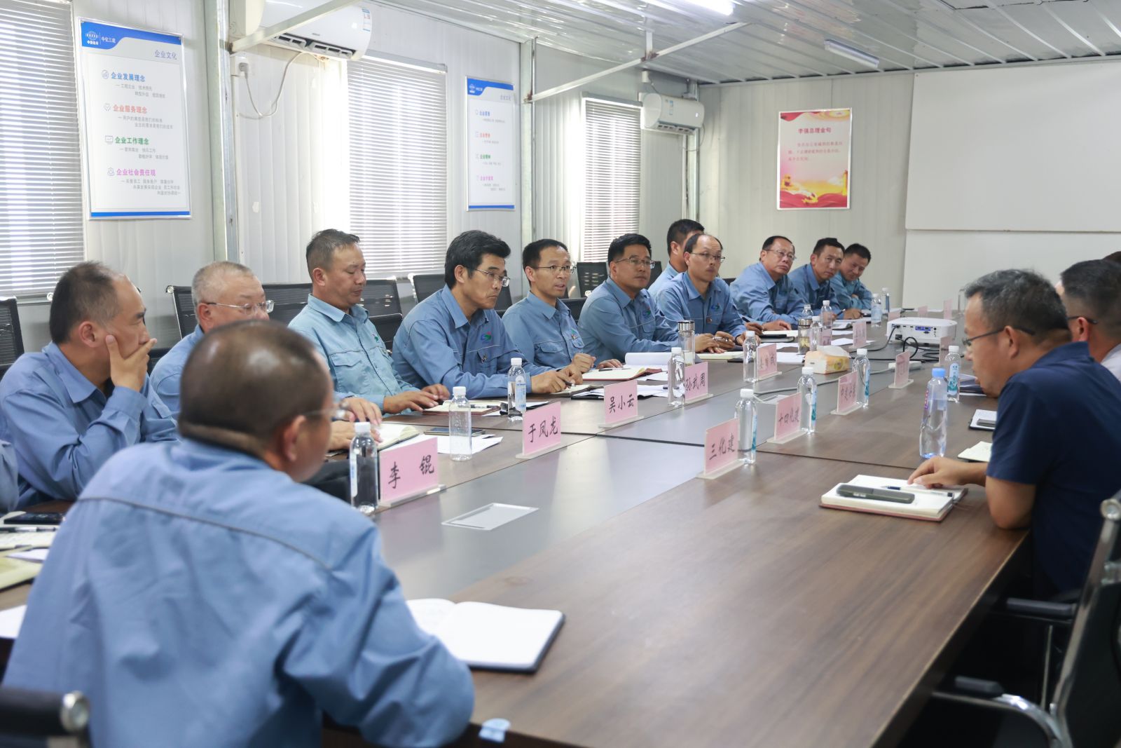 公司搬遷項目部指揮部有關(guān)成員及監(jiān)理公司負(fù)責(zé)人和6個主標(biāo)段項目經(jīng)理參加了會議。監(jiān)理公司和項目經(jīng)理就工程施工完成情況、遺留尾項施工計劃等情況進(jìn)行了匯報。