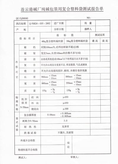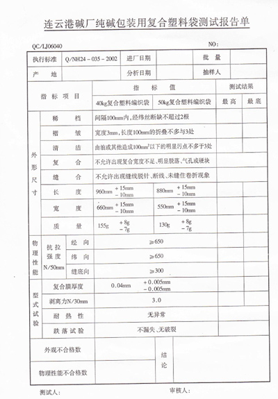 5.6 其他主要資格要求:具有合法有效的生產許可資質,企業(yè)制度完善、質量管理規(guī)范,具有完整的拉絲、織布、縫紉、檢測等生產線,注冊資金不少于500萬元(人民幣)。食品包裝袋投標人應具備食用包裝物生產許可資質,并提供第三方檢測報告。投標人必須送樣品袋先經我公司質檢部門檢測合格(2018年10月20日之前送到連云港堿業(yè)有限公司供應部,原招標人供應商不需送樣品袋)。符合法律、法規(guī)規(guī)定的其他條件。