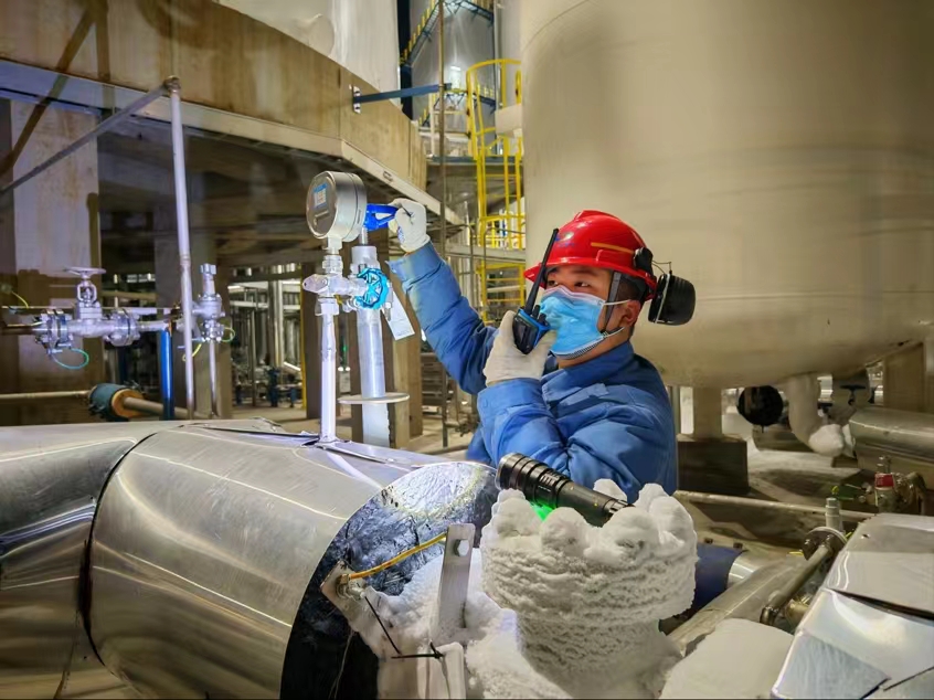 “春節(jié)期間,我們一定堅(jiān)守崗位,保持最佳狀態(tài),確保各項(xiàng)工作有序推進(jìn)。” 空分車間員工堅(jiān)定地說道。“春節(jié)期間更要打起十二分精神,不能有絲毫懈怠。” 他們密切關(guān)注著設(shè)備的運(yùn)行參數(shù),仔細(xì)記錄著每一個數(shù)據(jù)。“走,除夕夜檢查不能停,一定要確保萬無一失。”夜色中,他們頂著瑟瑟寒風(fēng)認(rèn)真巡檢,檢查空壓機(jī)運(yùn)行狀態(tài),保障儀表氣穩(wěn)定供應(yīng)。為了確保后序工段氮?dú)獯祾吆兔芊鈿夤?yīng),空分車間定時對真空液氮儲槽進(jìn)行充液,為氮?dú)夤?yīng)保駕護(hù)航。